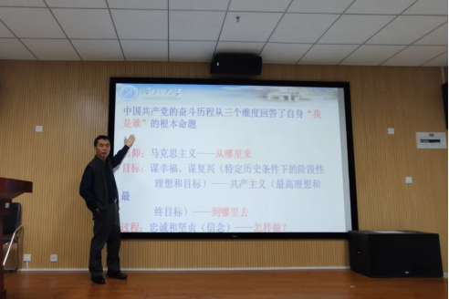 苟老师引导学生们思考并提出问题:“中国共产党何以伟大而成功?”中国共产党的奋斗历程从信仰、目标、过程三个维度回答了“我是谁”的根本命题。苟老师坚定地说到,中国共产党以马克思主义为信仰,以实现共产主义为最高理想和最终目标,以特定历史条件下,为中国人民谋幸福、为中华民族谋复兴为阶段性理想和目标,坚守着一颗忠诚坚贞的心,让初心和本心成为历史自觉,积极创造与分享,理想终会实现。
