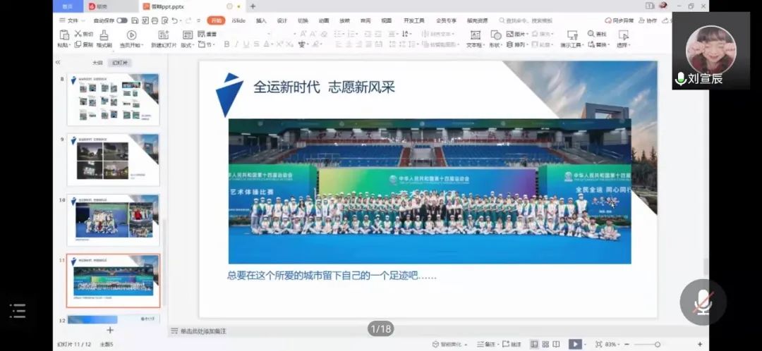 最后,我院第十四届全运会志愿者代表张玉泉、刘宣辰位同学给同学们分享了自己参与全国性体育赛事志愿活动的难忘经历,她们用行动彰显当代青年的精神风貌,充分展现了全运会“全民全运,同心同行”的主题精神。