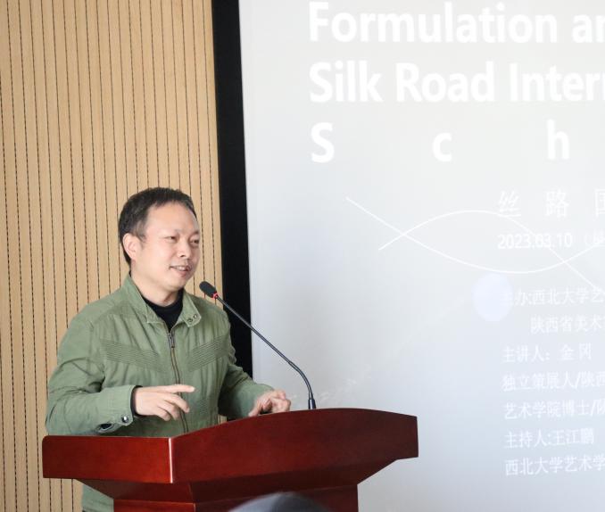 3月10日上午,“丝路国际艺术策展”专题讲座在西北大学艺术学院报告厅举办。讲座由陕西省美协策展委员会秘书长、陕南画院副院长、独立策展人金冈先生主讲,西北大学艺术学院副院长王江鹏老师主持,艺术学院教师及2022级专硕到场听讲。