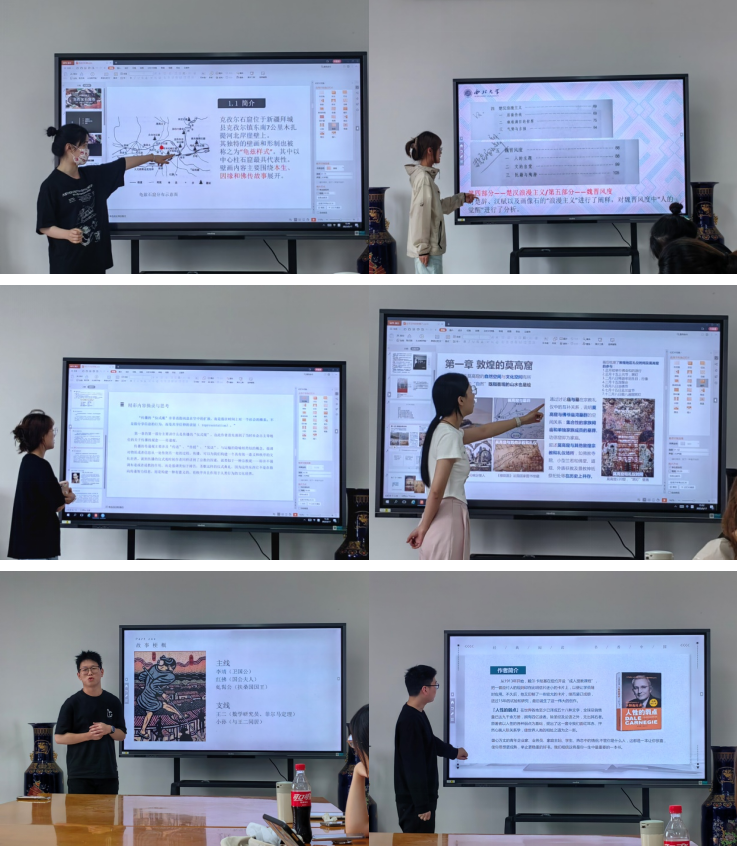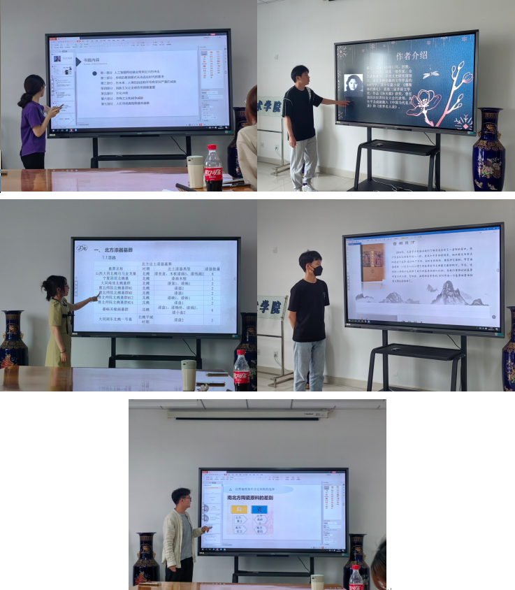 袁豪杰等十一名硕士研究生围绕文学作品、美术专业相关的艺术研究展开精彩分享。在整个读书会互动交流过程中,同学们都展现出了严谨认真的求学态度,大家围绕《中国石窟研究•克孜尔石窟卷》、《丝绸之路美术考古——甘青地区史前彩陶研究》、《美的历程》、《人性的弱点》、《作为文化的传播》等内容进行了积极讨论,分享各自的观点。交流学习的过程十分热烈融洽,会场不时响起阵阵掌声。