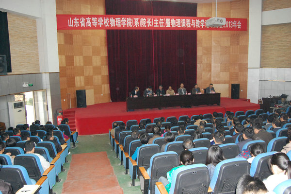 2013年11月2日,由山东省物理学会主办,济宁学院物理与信息工程系承办的“山东省高等学校物理学院(系)院长(主任)年会暨物理课程与教学论研究会2013年年会”在我校理科楼报告厅顺利召开,来自山东大学、中国石油大学(华东)、山东师范大学、山东科技大学、哈尔滨工业大学(威海校区)、山东理工大学、曲阜师范大学等省内24所高校的79名物理学领域的专家学者参加了本次会议。济宁学院副院长刘德胜出席会议并致辞。
