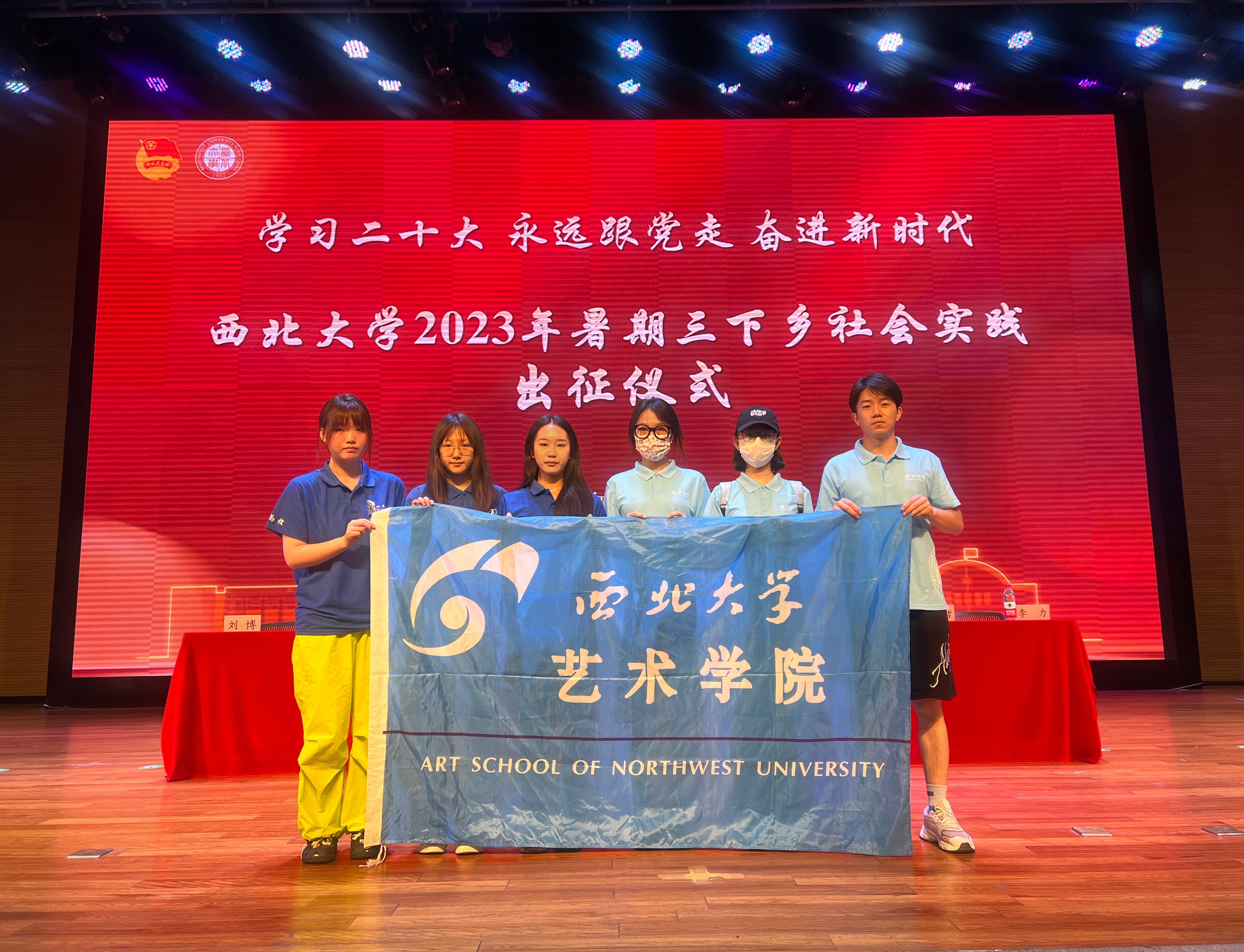 7月12日上午,学院党委副书记徐茜老师、全体专职团干和6支立项团队队员代表共同参加了西北大学“学习二十大 永远跟党走 奋进新时代”2023年暑期“三下乡”社会实践出征仪式。艺术学院的青年们将在实践奋斗中坚定理想信念、在砥砺奋进中增长能力才干、在脚踏实地中贡献属于自己的青春力量。