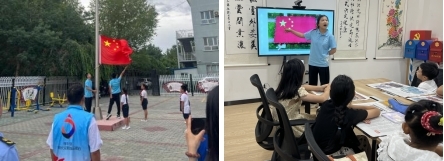 一次难忘的升旗仪式,一场深刻的爱国主义教育。在乌尔禾区柳树街街道,每周一都会举办升旗仪式,当地的干部群众还有学生都会参加。8月7日上午,曾是西北大学国旗护卫队队员的潘世川同学又一次成为升旗手,与队员张子航以及邱梓涵等四个小朋友一起,为大家带来一次难忘的升旗仪式。潘世川同学在国旗下的宣讲中说道,“爱国不是口号,而是行动,是一件件小事的完成,是一次次用心的付出。”此前,蒲萍同学为孩子们讲述国旗诞生的故事;大家还一起观看了西北大学艺术学院张磊老师导演的《美术老师的放羊班》影片。