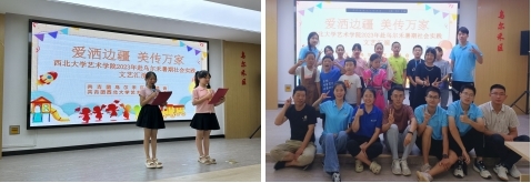8月11日上午,“爱洒边疆 美传万家——西北大学艺术学院2023年赴乌尔禾暑期社会实践文艺汇演”顺利举办,同时,团队将美术课堂上的作品也进行了成果集中展示。在文艺汇演中,孩子们带来了蒙古舞、拉丁舞和街舞表演,朗诵了《木兰辞》、《草原》、《中国少年说》节选内容,还合唱了《歌唱祖国》、《让我们荡起双桨》。汇演结束,队员们为孩子们戴上生日帽,唱起生日歌,一起分享这欢乐而难忘的时刻。肖武群同学说,“我们将牢记习近平总书记对青年的期望,持续助力边疆地区教育事业 的发展,把我们当代大学生的热情、活力、知识、快乐,传递给边疆的孩子们,促进各民族 共享发展成果,像石榴籽一样紧紧团结在一起,共同迎接中华民族伟大复兴。”