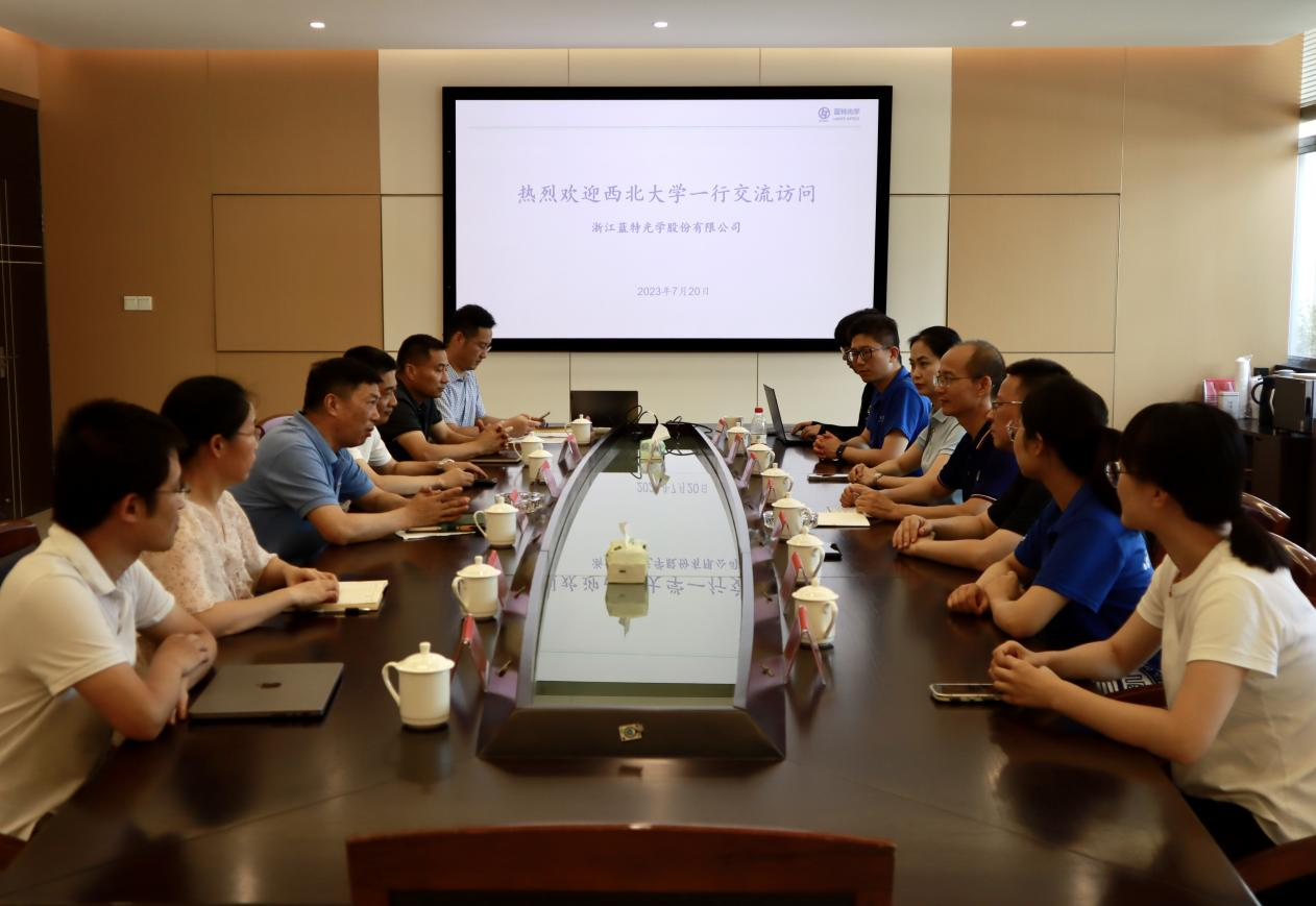 蓝特光学股份有限公司董事长徐云明对西北大学艺术学院一行表示欢迎,并就公司历史沿革和基本情况做了介绍。艺术学院党委书记吕健介绍西北大学艺术学院建院经历和目前专业学科建设情况,双方围绕合作规划和保障机制等事宜进行深入交流。
