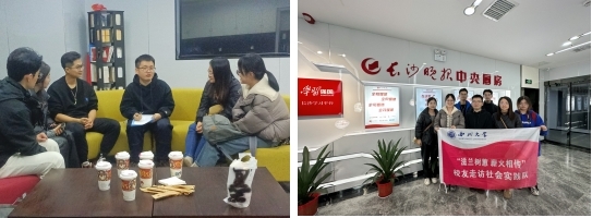 2024年1月10日至14日,艺术学院“薪火相传共话成长”校友走访实践队师生一行六人奔赴长沙,先后来到深圳金三立视频科技股份有限公司长沙研发中心、长沙晚报社、湖南猴米互娱文化有限公司三家用人单位,实地走访了伍雨欣、林旸、王者三位校友,积极搭建沟通桥梁,增进深厚情谊。