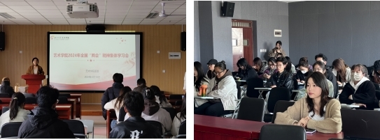 2024年3月13日下午,艺术学院组织学生干部集中学习2024年全国“两会”精神,通过了解国家大事,关注国家发展和社会热点,不断激发同学们的政治热情,强化使命感和责任感。参加集中学习会的有学院团学组织学生干部、第五期青马班成员以及一站式社区14号楼的团支部和学生自管会的同学。
