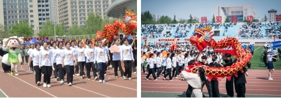 今年迎来了甲辰龙年,学院学生利用画笔纸板等环保材料用两周时间设计并制作完成了红色游龙,充分展现了艺术青年们在设计思维和动手能力上的优势,为运动赛场再增几分艺术气息。