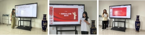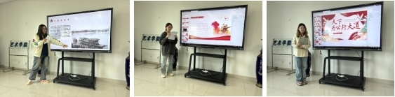 集中学习后,进行了艺术学院2024年主题微团课交流活动,9名团支书依次上台进行了展示。微团课主题鲜明、生动丰富,大家围绕党的最新理论成果、党的青年运动史、新时代中国特色社会主义的伟大成果、传承红色基因等内容,紧密结合学校共青团工作和团员青年思想、学习、生活实际,以生动的语言将团的知识娓娓道来,既有理论性,又有启发性。展示结束,白鹤老师从微团课设计、现场展示等几个方面对大家的表现作简要点评,希望大家通过活动坚定政治理想,严格岗位要求,不断提升团干部思想政治工作的理论水平、专业素养和工作能力,在交流中学习,在分享中进步。