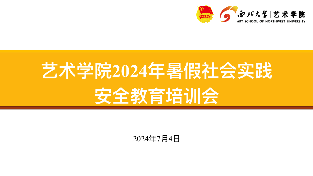 青春志愿行,奉献新时代。2024年7月4日下午,艺术学院团委在长安校区东学楼北1501会议室举行了2024年暑期“三下乡”社会实践安全教育培训会议。学院团委书记白鹤、学生兼职副书记蒲萍以及各社会实践队所有成员在线上、线下同步参加了此次培训。