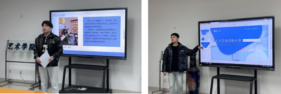 2024年12月3日晚,艺术学院研究生会在长安校区东学楼北1501会议室举办《朋辈力量——师兄师姐榜样事迹分享会》。此次分享会邀请到两名就业学生代表——2022级硕士孙彬、宗德军和一名研究生国家奖学金获得者代表——2023级硕士倪子雯,为学院在校研究生分享了自己的成长之路。会议由学院研究生会实践部负责人金池同学主持。
