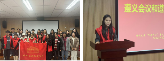 随后,西北大学“艺朝艺夕”遵义会议精神志愿宣讲团符咏琪同学通过讲述小故事和组织观看视频的形式,为青马成员们讲解了遵义会议的历史背景、召开过程、决策内容以及遵义会议精神内涵、当代共产党人如何更好地弘扬遵义会议精神。该团队由艺术学院10名本硕学生组成,并于2024年11月成功入选团中央2024年全国大学生遵义会议精神志愿宣讲团。