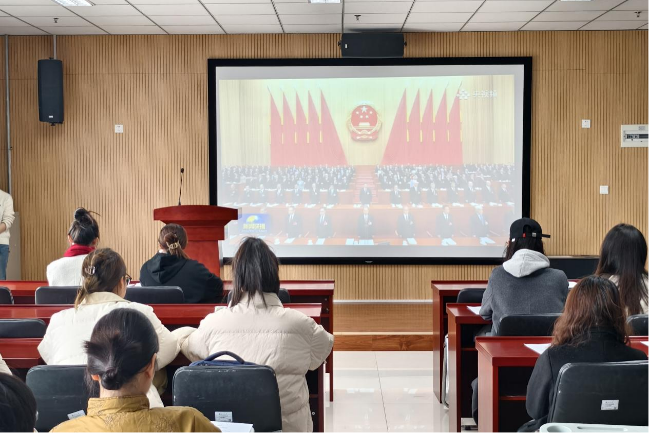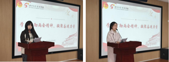 会上,大家一同观看了全国“两会”召开盛况,学习了习近平总书记看望参加全国政协十四届三次会议的民盟、民进、教育界委员时的重要讲话,深刻理解与把握中国式现代化对教育、科技、人才的需求,努力成为德智体美劳全面发展的社会主义建设者和接班人。郝宇晨等三位同学结合所学专业,谈了自己的学习心得,表示要树立正确的世界观、人生观、价值观,坚持以人民为中心的创作导向,深入生活、勇于实践,扎根传统、开拓创新。