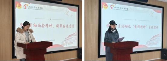 随后,姚轹彤同学为大家作雷锋精神主题宣讲,让大家理解,学雷锋学的是“平凡中的伟大”、“纯粹的热爱”和“时代的担当”,团员青年们更应心存对他人的关怀、社会的责任和生命的热爱,将雷锋精神化作日常行动,做一颗永不生锈的螺丝钉。