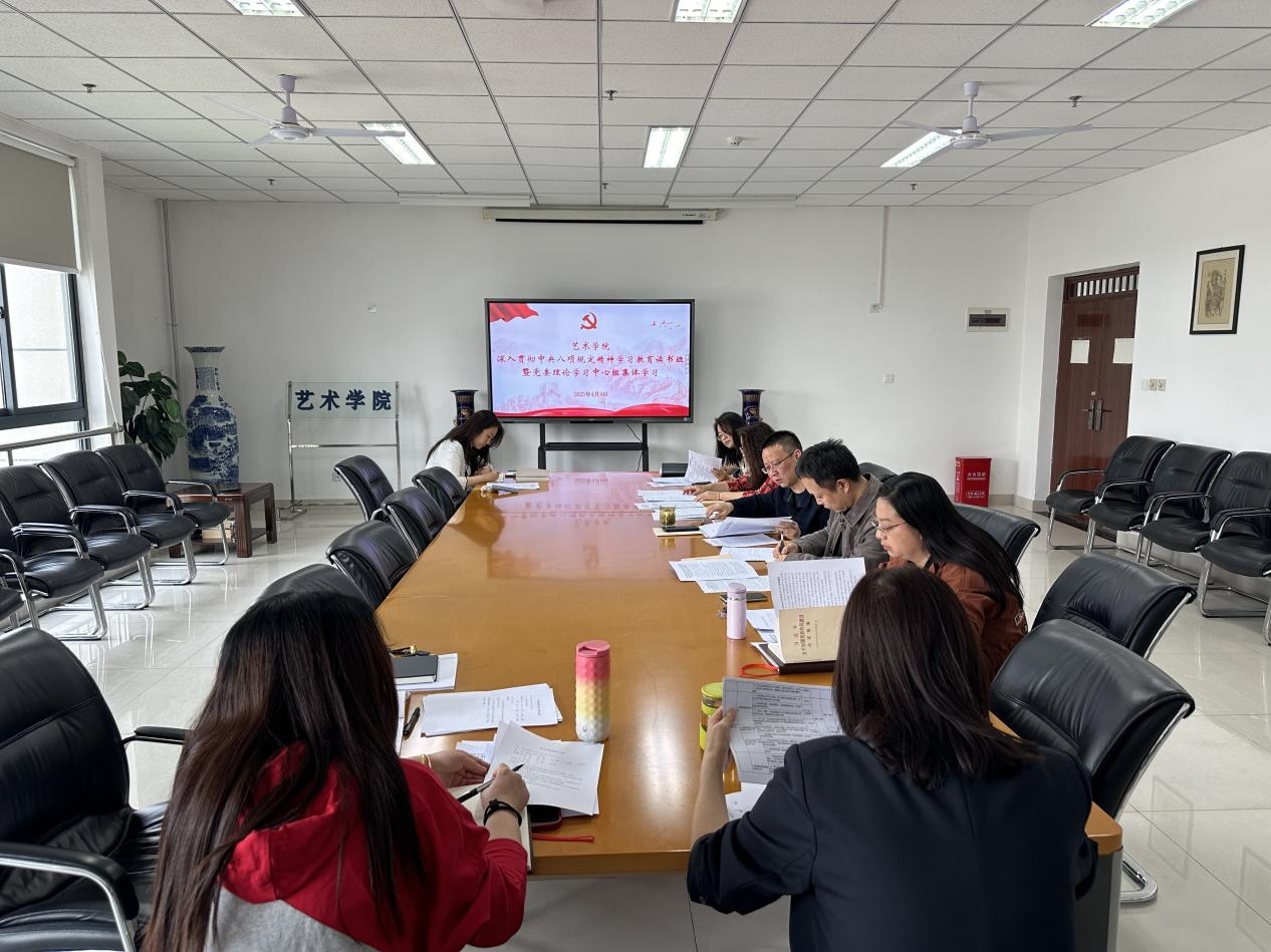 4月9日,艺术学院举办深入贯彻中央八项规定精神学习教育读书班暨党委理论学习中心组(扩大)集体学习,学院党委委员、办公室主任、团委书记等参会。会议由学院党委书记吕健主持。