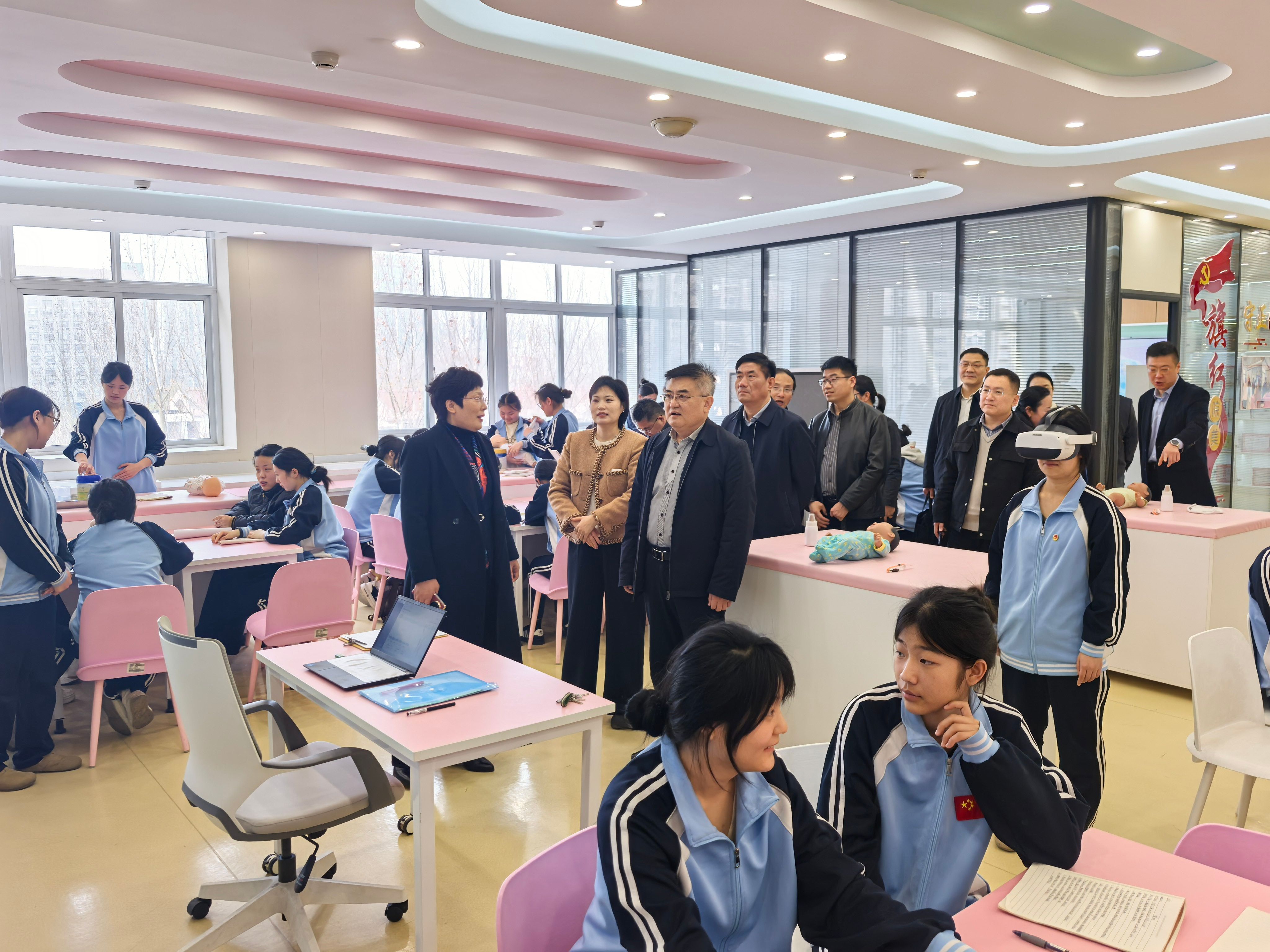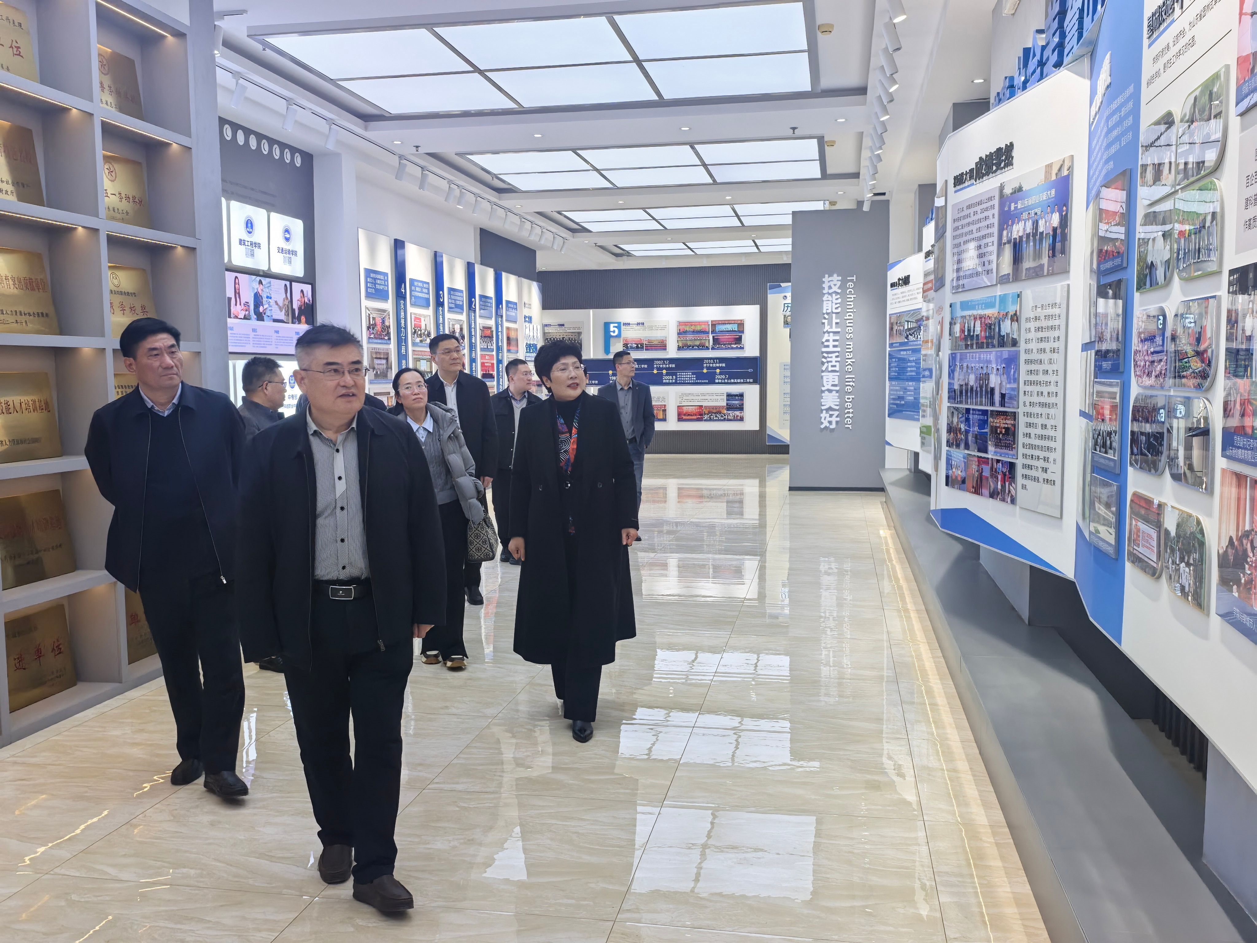 考察伊始,丰家雷一行实地参观了技师学院文化展厅和智能制造、高端化工、家政与健康等实训中心,深入了解学院从传统技能培训到现代产业技术人才培养的转型路径。特别是在实训中心,校企共建的“教学-实训-生产”一体化车间、企业真实项目进课堂的实践模式,给考察组留下深刻印象。丰家雷强调,技师学院‘把课堂搬进车间,让技术对接产业’的办学实践,为应用转型提供了生动样本。