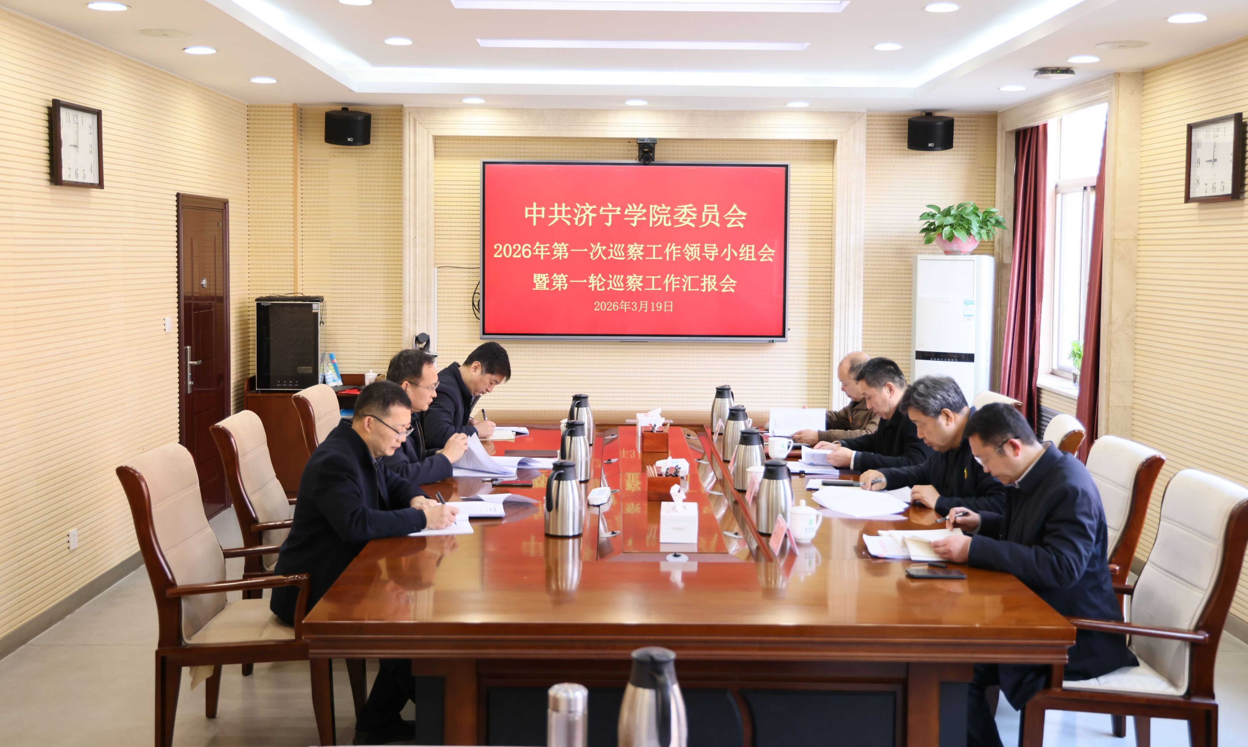 会议审议通过了《中共济宁学院委员会2026年第一轮巡察工作实施方案》等相关文件,并对巡察组组建、巡前培训等事宜进行了研究部署。