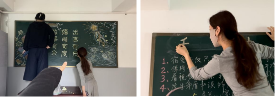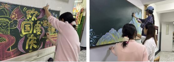 9月下旬,艺术学院团委组织多名青年志愿者,在长安校区“一站式”学生社区14、16号宿舍楼,开展“迎国庆颂祖国”主题黑板报绘制志愿服务活动。