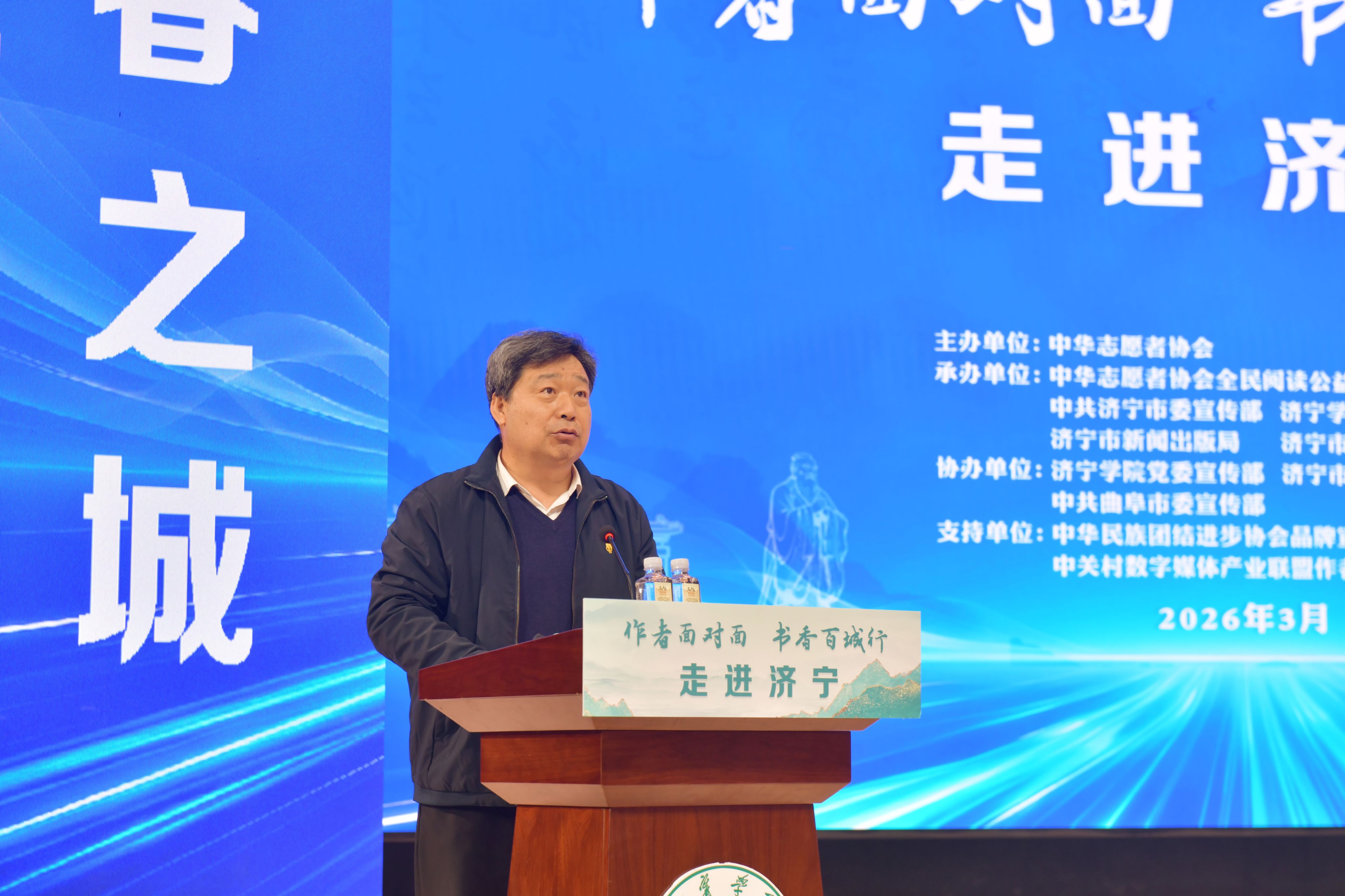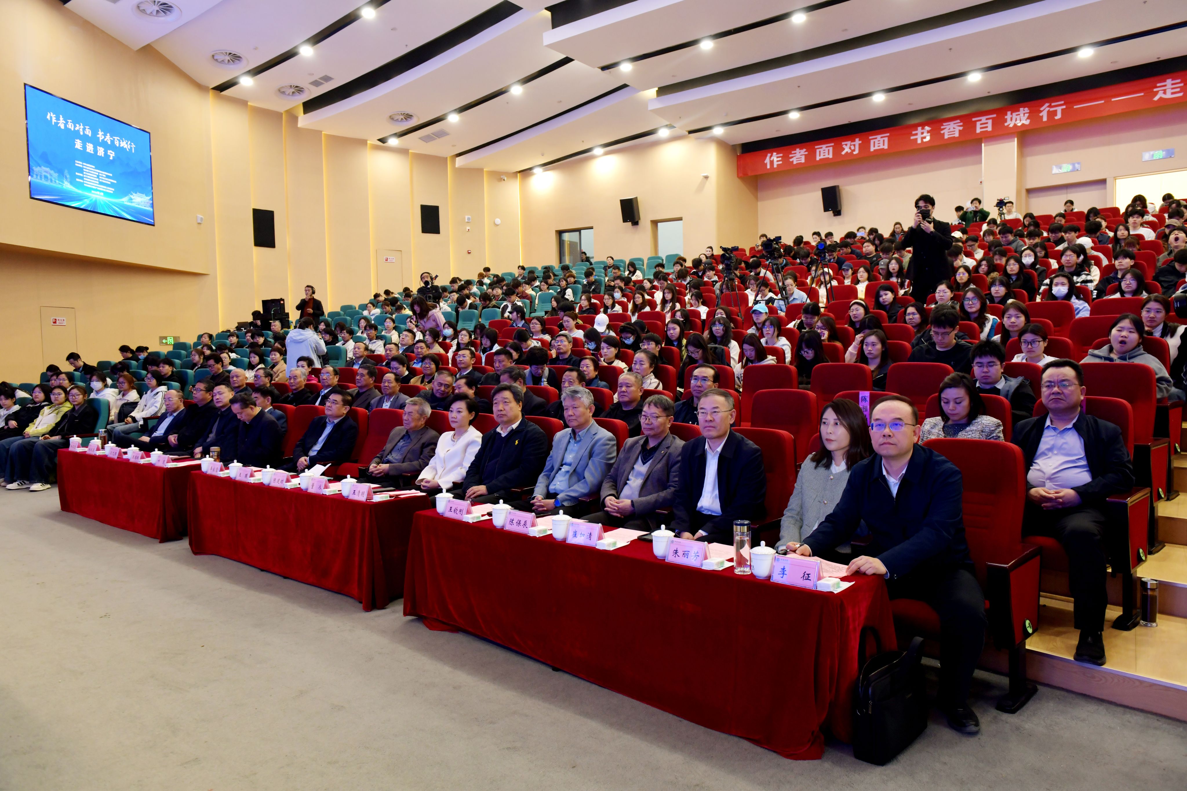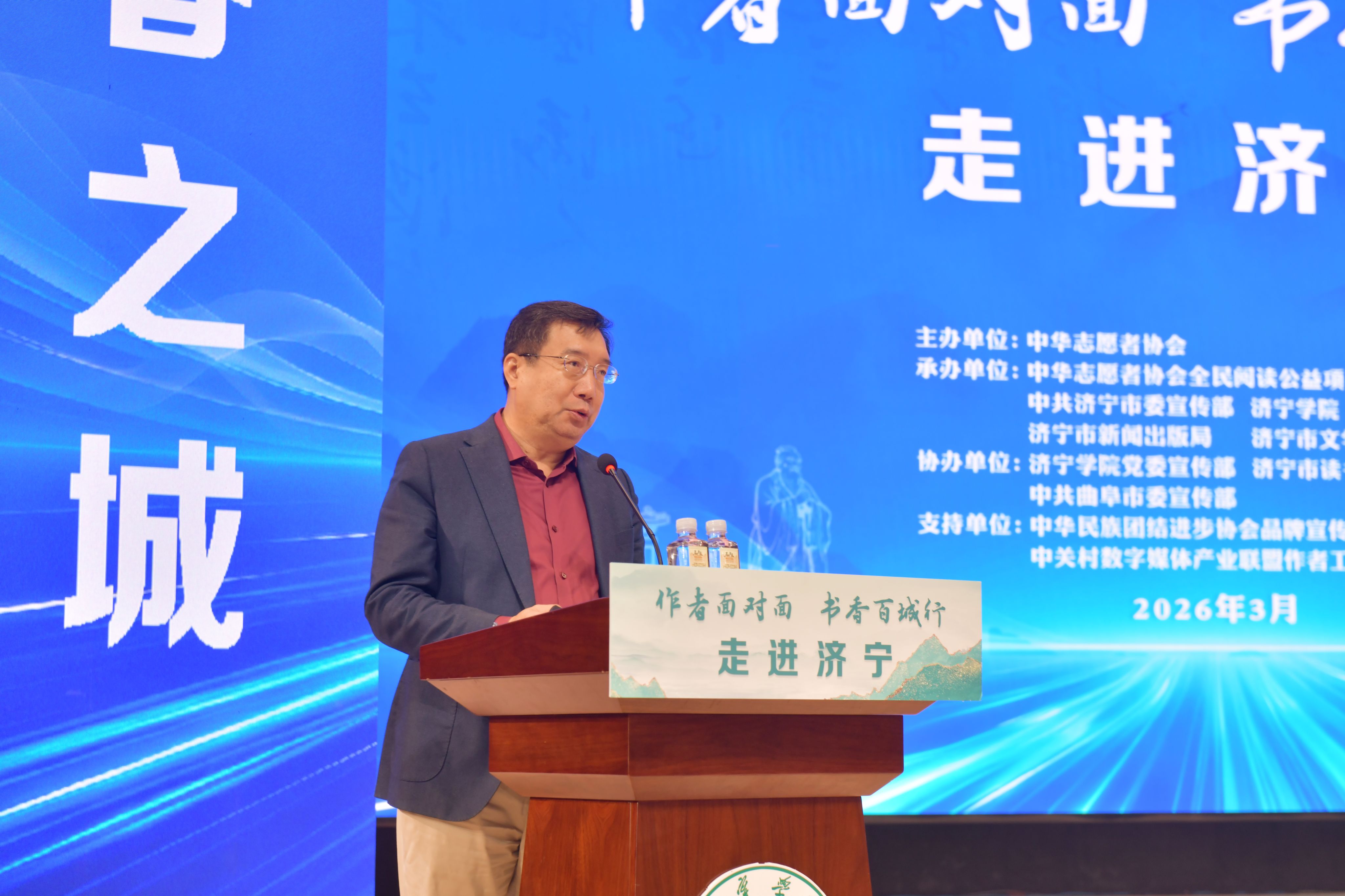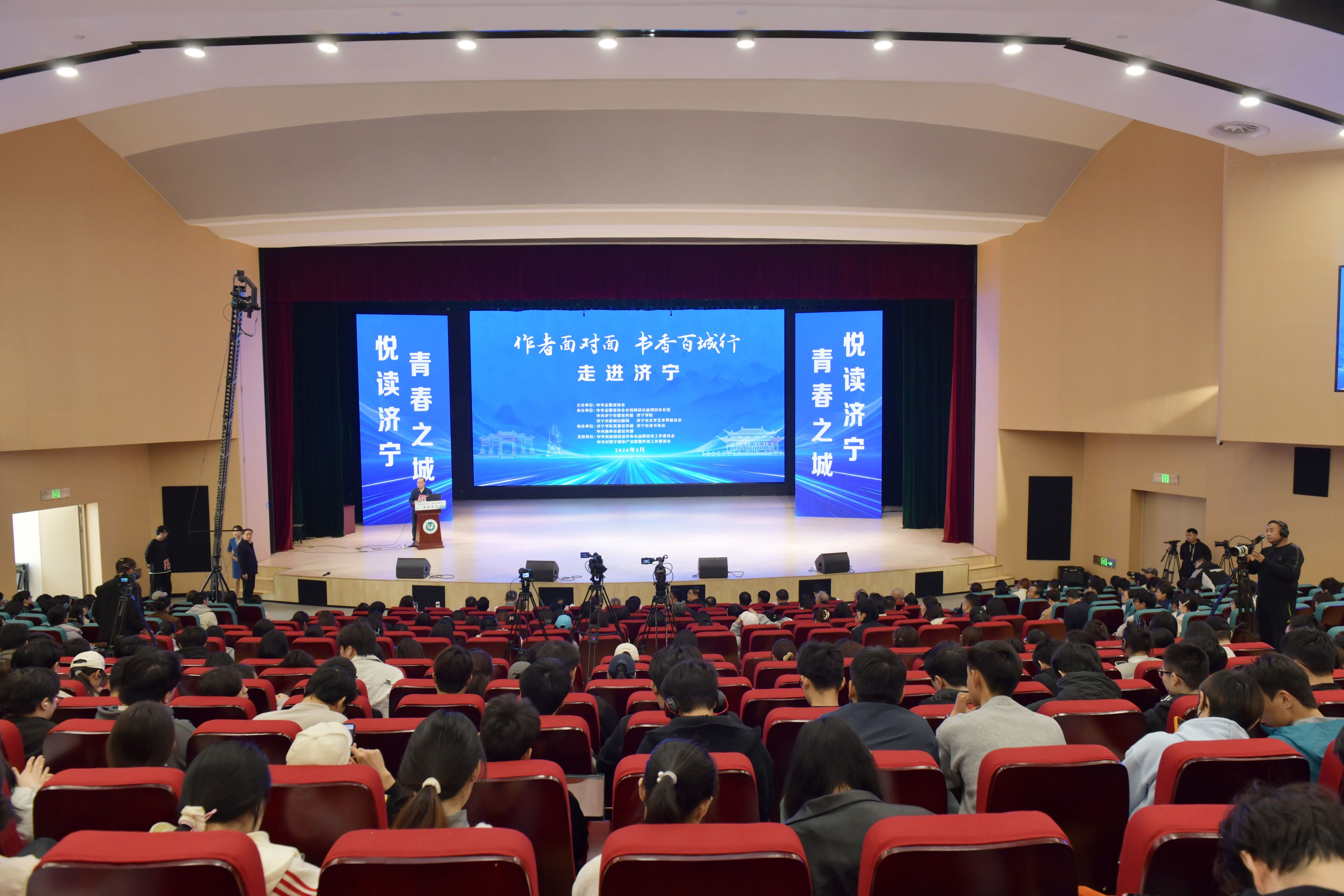 3月26日上午,由中华志愿者协会主办,中华志愿者协会全民阅读公益项目办公室、中共济宁市委宣传部、济宁市新闻出版局、济宁学院、济宁市文学艺术界联合会承办的“作者面对面·书香百城行”走进济宁活动在我校举行。我校党委副书记、校长王清明出席活动并致欢迎辞,中共济宁市委常委、宣传部部长董冰出席活动并致辞。我校党委副书记丰家雷,曲阜市委书记崔加清,济宁市委宣传部、团市委、市文联、市文化和旅游局、市新华书店、曲阜市委宣传部负责同志以及我校师生代表、社会各界阅读推广人、新闻媒体记者朋友等500余人参加活动。
