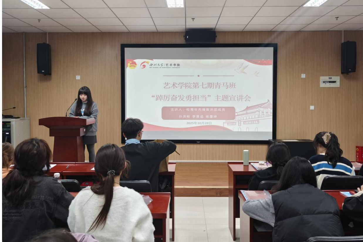 2025年10月28日晚,西北大学艺术学院“青马工程”第七期大学生骨干培训班开班仪式于长安校区东学楼北1401举行。第七期青马班学生兼职班主任及全体学员共同参加。开班仪式由院团委组织委员王姚宇同学主持。