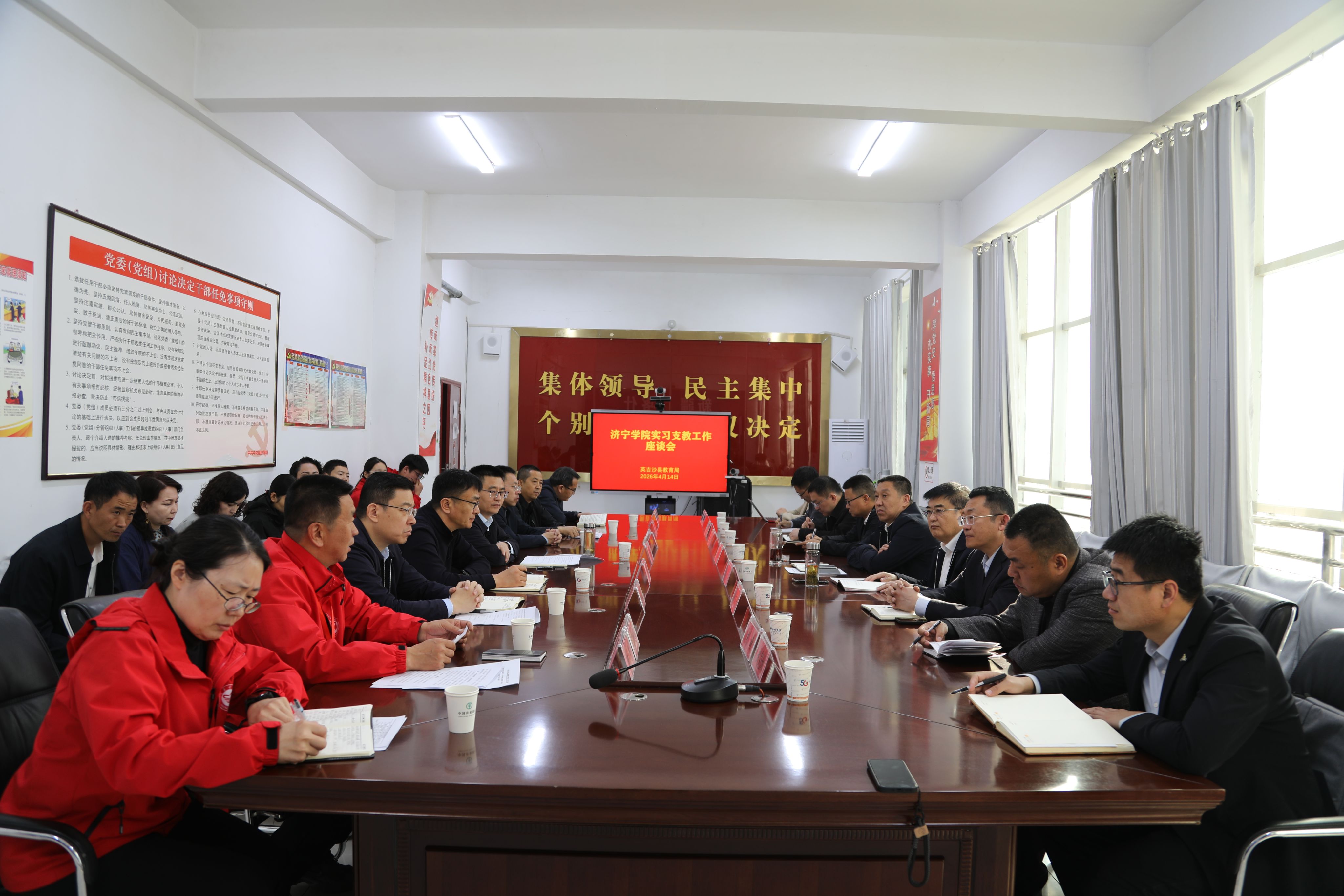 座谈会上,英吉沙县委负责同志代表英吉沙县党委政府,对济宁学院长期以来给予英吉沙县教育事业的鼎力支持和无私援助表示衷心感谢。他对支教学生扎实的专业素养、严谨的教学态度和突出的教学能力给予高度评价,肯定了我校师生在教育提质、促进民族团结等方面作出的积极贡献。支教团负责人汇报了支教工作情况。