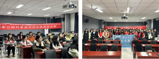 第一阶段,西北大学“艺绘自然”国家公园科普宣教志愿宣讲团负责人谢祖晓同学简短地介绍了团队情况与工作愿景,团队成员郝宇晨、王姚宇两位同学图文并茂,生动讲解国家公园的宏观布局、建设意义、生态价值以及海南热带雨林国家公园独特的生态魅力与保护价值。