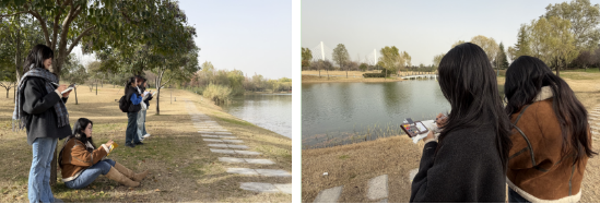 11月26日下午,团队走进沣河梁家滩湿地公园开展生态体验,立足专业特长,大家拿出画笔直抒胸臆,用镜头定格生态之美。