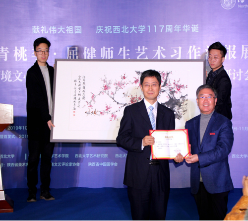 屈健教授向西北大学捐赠作品,郭立宏校长颁发收藏证书
