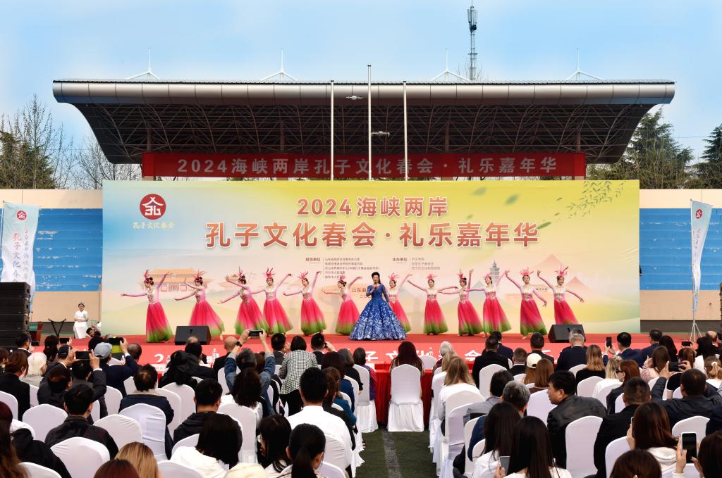 仪式结束后,进行了文艺演出,女声独唱《千古孔子》、诗经歌曲合唱《子衿》、女子群舞《醉春风》、器乐合奏《盛世雅韵》、《射礼》展演等节目,赢得观众阵阵掌声。