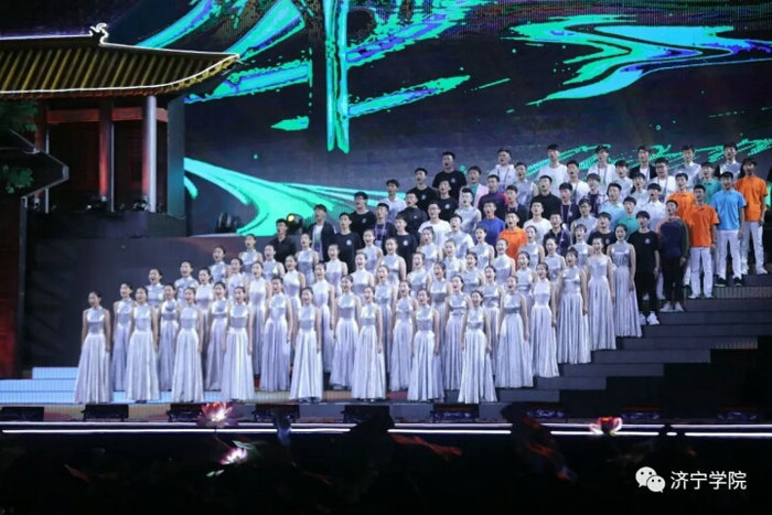 今年的中秋晚会由中央广播电视总台、济宁市委、济宁市人民政府主办,是中央电视台、中央人民广播电台、中国国际广播电台三台合一之后面向全球推出的首场中秋晚会。晚会选在孔子诞生地尼山举办,充分体现了对传统文化的尊崇。晚会以“全球华人过中秋、天涯海角共此时”为主题,共分3个篇章,分别是上篇“不舍昼夜”、中篇“悠悠我心”和下篇“大道之行”。节目设计别具匠心,每一篇章都从我校学生演员吟诵先哲经典名句开始,充分凸显齐鲁文化元素和博大精深的儒家文化底蕴,突出中华优秀传统文化的传承弘扬,体现出全球华人的思乡情结。我校中文系、文化传播系、经济与管理系、教育系、音乐系、数学系、物理与信息工程系、化学与化工系、生命科学与工程系、计算机科学系、体育系等11个系的1594名学生演员参与了诵读节目;音乐系194名学生演员参与三地互动歌曲《海草舞》,130名学生演员参与大合唱《在希望的田野上》,138名学生演员参与《乐舞》,200名学生演员参与《海上明月》压轴舞蹈,另有12名男生参与歌曲《幽兰操》伴舞表演,3名女生参与歌曲《答案》的和声伴唱。济宁学院音乐系、济宁学院诵读团队为2018年中央广播电视总台中秋晚会特别鸣谢单位。我校共有97名工作人员参与秋晚工作,工作在秋晚一线的带队老师达40余人,互动学生学生观众125人。