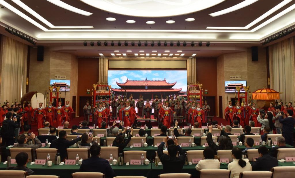 曲阜市政协主席董洪波、曲阜市尼石春秋博物馆馆长李春汉分别代表曲阜市政协和尼石春秋博物馆共同向至圣孔子基金会捐赠一套复原孔庙雅乐乐器。济宁学院音乐学院师生表演孔庙雅乐和佾舞。