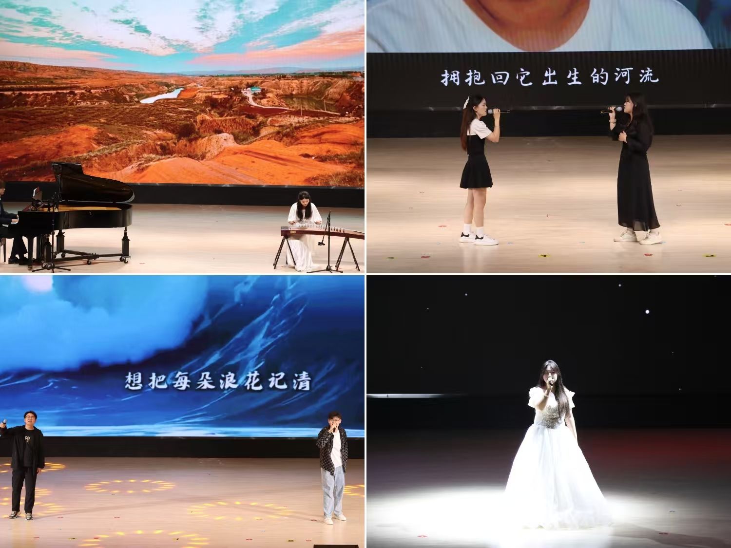 刘星宇、赵浩然的器乐合奏《秦土情》以古筝与钢琴的对话,展现了秦川大地的厚重历史;李翊睿、胡雪寒等女生合唱的《爱你》以轻快旋律传递青春甜蜜,引发全场互动。此外,《大海》《年轮》《是妈妈是女儿》等歌曲深情诠释了爱情、亲情与成长中的点滴感动,令观众沉浸其中。展演尾声,全体学生合唱《世界赠与我的》,用温暖的和声传递对生活的感恩与希冀。