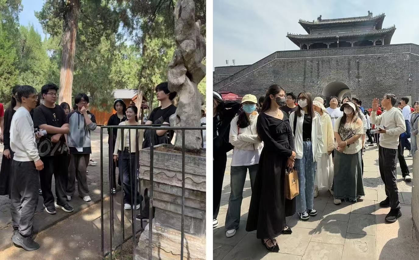课程考察中,任课老师讲解了石雕、汉碑等文化遗存的文化背景、艺术特点,同学们认真记录、积极互动。本次教学活动将课堂所学理论知识与实地考察相结合,通过近距离接触邹鲁地区的建筑艺术和园林景观,对建筑、雕刻、书法等艺术形式有了更直观地认识,巩固了学生对儒家文化的理解。进一步增强了文化自信和传承中华优秀传统文化的责任感。