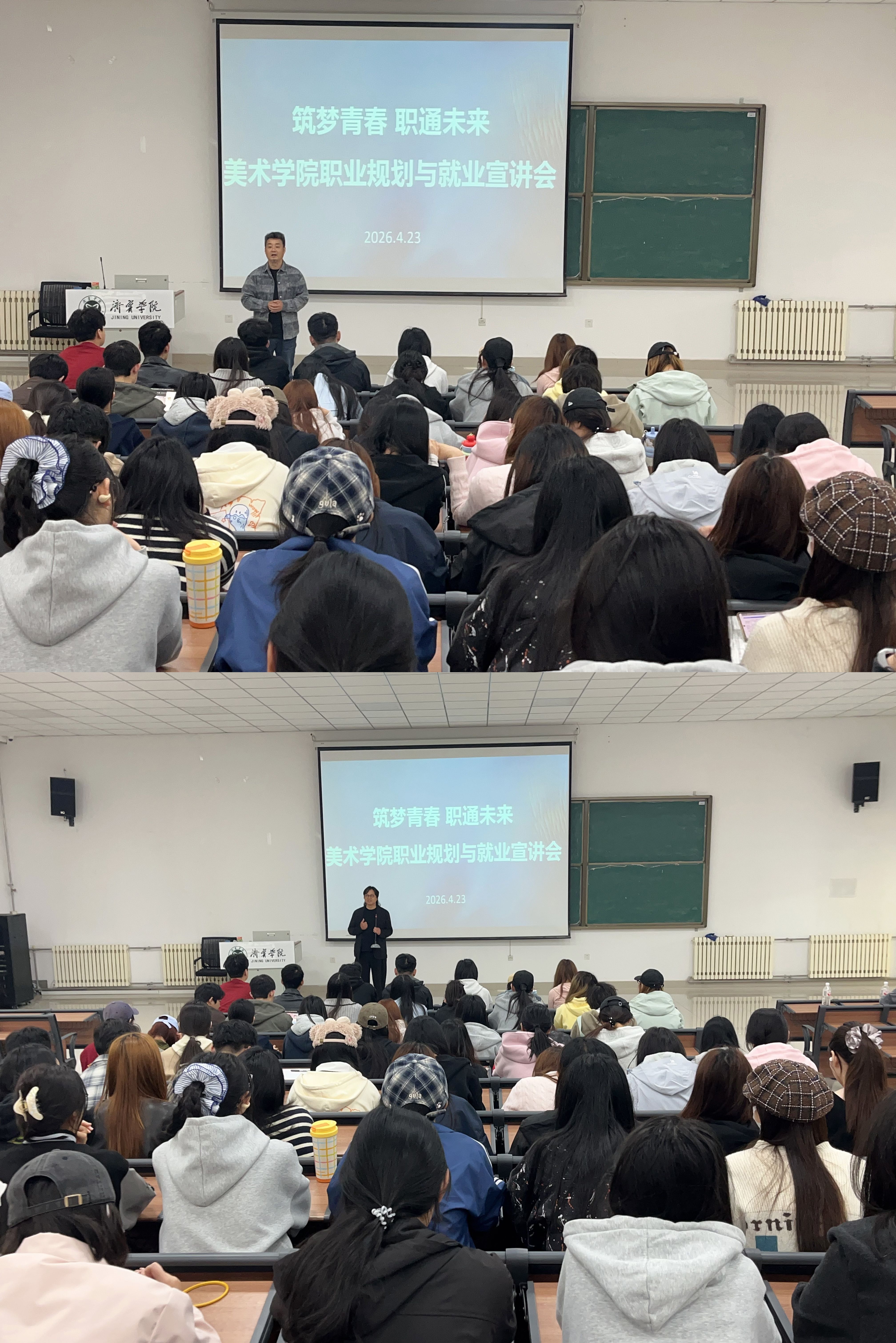 校友董涛现任济宁西莫空间设计有限公司设计总监。他结合自己从业24年的经历,围绕“从校园到行业”主题,讲述了如何在校夯实基础、在职踏实成长,为同学们提供了可借鉴的成长路径。校友王伟身兼中国贸促会创意设计中心理事、上海国际设计周艺术指导、济宁轻舟墅美高端设计中心CEO等多重身份。他结合从业经验,从行业趋势、平台资源与个人品牌建设等角度,分享了设计领域的多维发展可能,拓宽了同学们的就业视野。