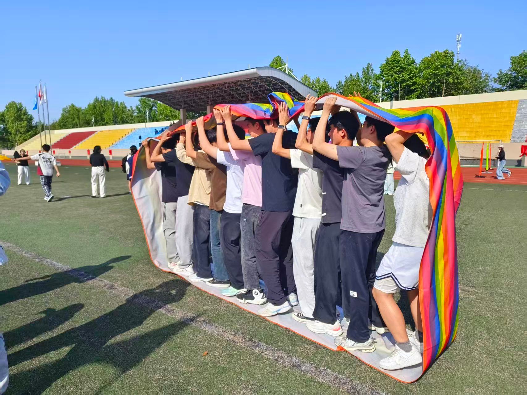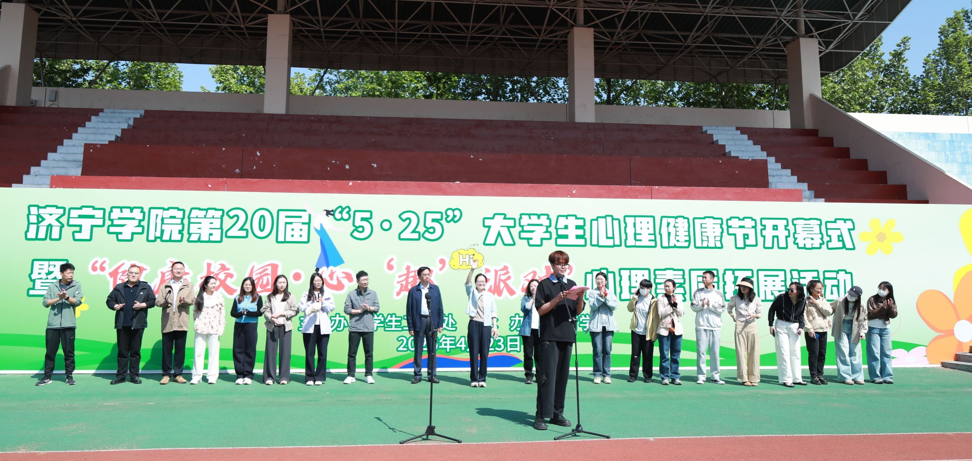 4月23日下午,我校第20届“5・25”大学生心理健康节开幕式暨“健康校园·心‘趣’派对”心理素质拓展活动在东操场举行,本次活动由体育学院协办。各学院辅导员、朋辈心理辅导员及参赛班级共1000余人齐聚一堂,在欢声笑语中开启心灵与体能的碰撞之旅。