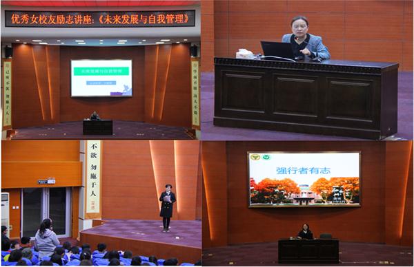 连续三场优秀女校友励志讲座分别邀请了三位不同年龄层次、不同岗位类别的女性校友。她们中有在领导岗位多年的教育专家,有在地方具有一定影响力的媒体工作者,还有在985院校深造的年轻博士。她们怀着对母校的深情,分别从不同角度分享了在母校的求学经历、奋斗历程,并给予学弟学妹们许多建议和指导。同学们倍受鼓舞,受益匪浅。