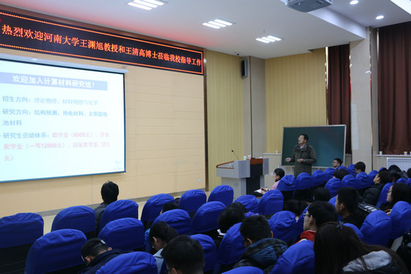 3月24日上午,河南省特聘教授、河南大学博士生导师王渊旭教授和黄河学者王清高博士应邀来我校进行学术访问,并在理科楼D101先后为我校师生作了题为“Zintl相热电材料的理论研究”和“多变的金红石二氧化钛表面结构以及背后的物理机制”的学术报告。